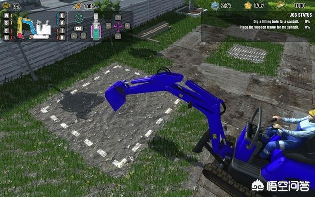 左上角是操作指示,按键很多,非常专业,但是操作起来很别扭,操作挖掘机并非一件容易的事。