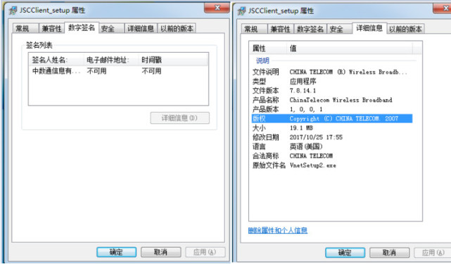 其实是被病毒控制用来挖矿,现在金山毒霸安全实验室对病毒进行溯源分析,发现带有该后门病毒的安装包并不只有“天翼校园客户端”,排查之后,还发现签名为“中国电信股份有限公司”的一款农历日历(Chinese Calendar),同样存在该后门病毒。