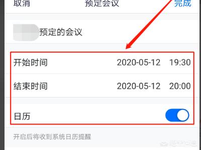 2、进入预定会议页面,设置会议【开始时间】、【结束时间】和【日历】。