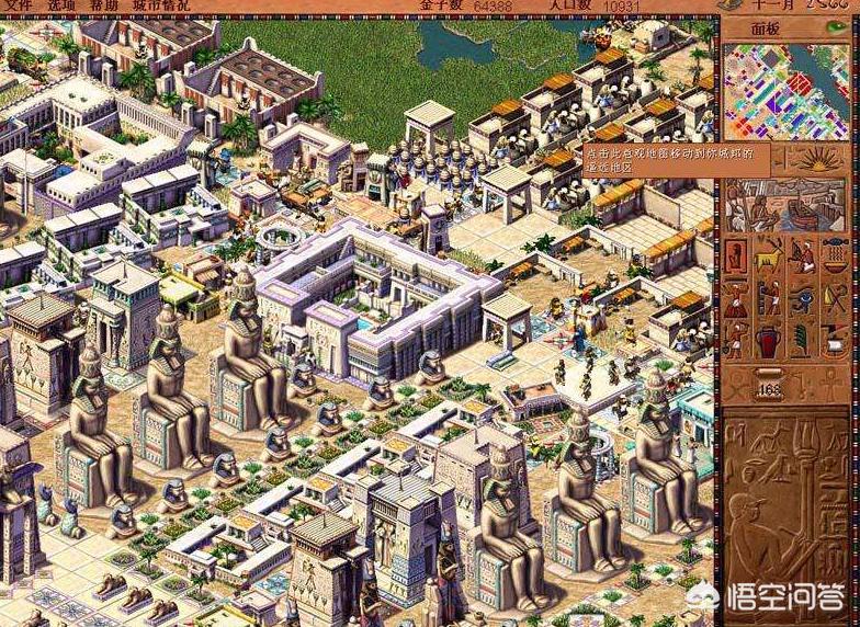 你一定会问为什么不推荐动作游戏,我觉得动作游戏都是追求画质和代入感的,我们没必要在真实度上因为内存不够去影响自己的体验。实际上这足以说明,为何早期游戏3D产品那么少,2D或者策略,即时战略会那么多,就是因为当时的电脑硬件,更适合跑这类产品。所以这个《法老王》,我觉得作为策略鼻祖作品之一,值得推荐给大家。这款作品体积更小,但是内容十分有趣,你可以在两河流域规划自己的土地,然后等待移民的到来。当大家聚集成一个小镇之后,你就要开始考虑供水,食物种植,以及各种服务功能的完善,甚至还有居民信仰的维护,治安的维护,建设军队保护法老,自己搭建金字塔等等,这个过程都是上帝视角,每一个小人都会在屏幕中各司其职,你甚至可以点选他们,问他们的感受和需求,然后当大家满意度都上升时,你的小镇会自动升级,居民会改善自己的住房条件,更多人会被吸引而来,一个小镇会从一开始的几十人,发展到数万人的都市,这个体验你很难想象最早的玩家从十多年前就开始享受了。
