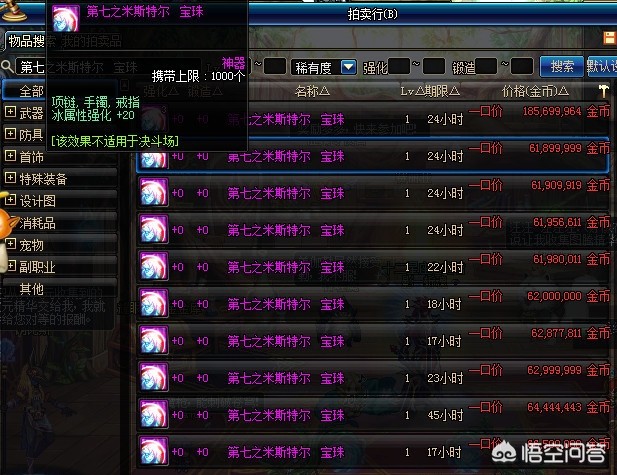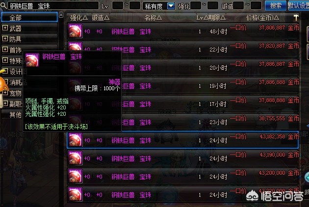 也就是20或者18属强了,这里选择就很多了,重点在于就算是相同效果的价格也会相差很多,所以这里放出大部分20以及18属强的宝珠价格,大家可以对照着购买,以免白白浪费了钱。