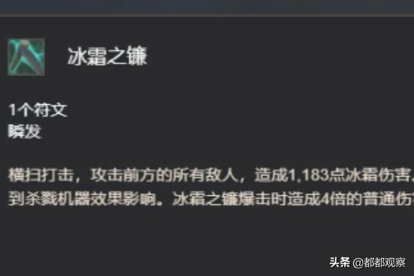 四、第四层选择冰霜之镰,范围工具,攻击前方全部敌人,主要是可以收到杀戮机器的效果的影响,非常实用。