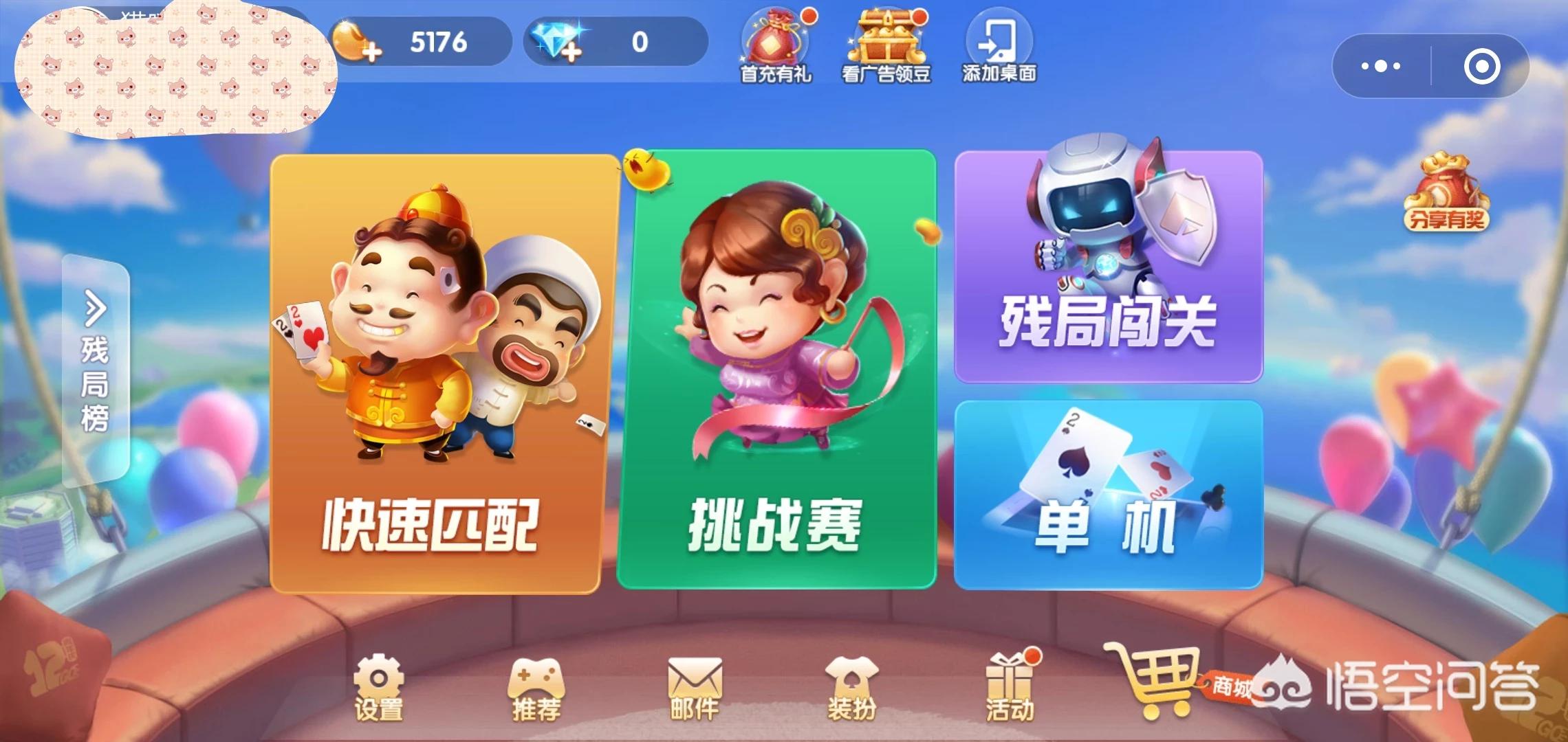 4.还有天天斗地主,麻将,象棋等均可以尝试,并且天天斗地主也加入了斗地主的残局APP版的天天斗地主很久没玩了不是很清楚,之前是没有的,大家用小程序也是可以的,如果是爱好斗地主,象棋等,都是可以去搜索的,毕竟下载软件还得几十m呢,节省手机空间啦!