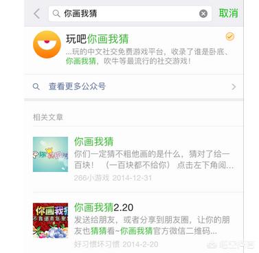 1、登陆微信,只要直接关注你画我猜的公众号即可。