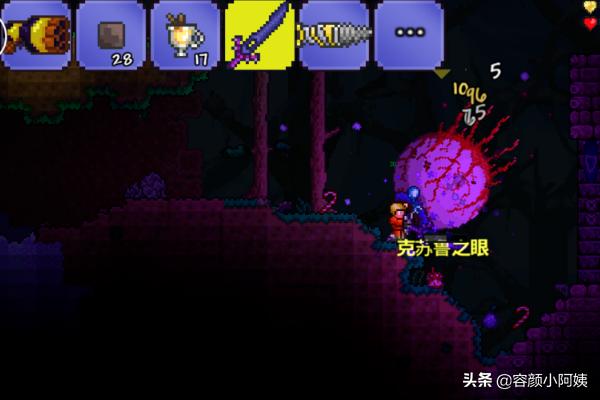 2、击败第一个BOSS克苏鲁之眼之后,就会获得BOSS矿石,利用矿石可以制作很好的武器,此时就可以在夜晚去对抗地牢场景中的骷髅队长。