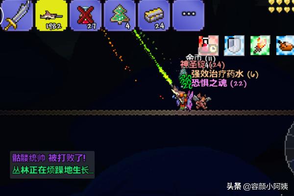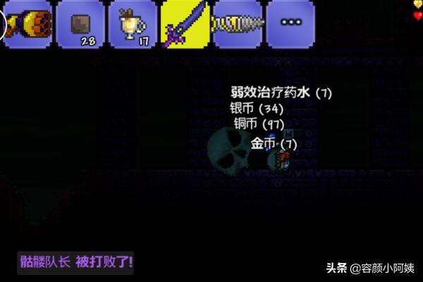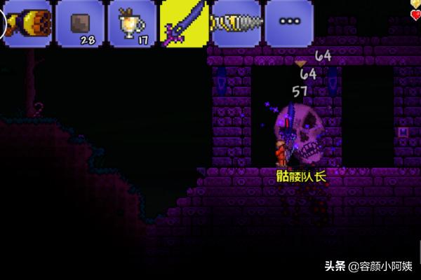 3、击败骷髅队长,地牢中的宝箱可以大大提高我们的整体实力,将地牢探索完毕之后,我们的整体能力就会有质的飞跃,之后我们向下挖掘到地狱场景,召唤前期最强BOSS肉墙。