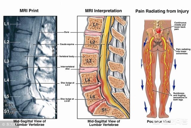 从医学解剖生理病理学角度来说突出的腰椎间盘会压迫坐骨神经、骶从神经或者马尾神经,而坐骨神经、骶从神经和马尾神经分别到达腿部,与腿部的神经相连。所以当腰椎第三、第四、第五腰椎间盘突出时,压迫通过椎间孔的神经,其神经电冲动就会放射到腿部,就会出现腿部疼痛、腿部发麻的情况出现。