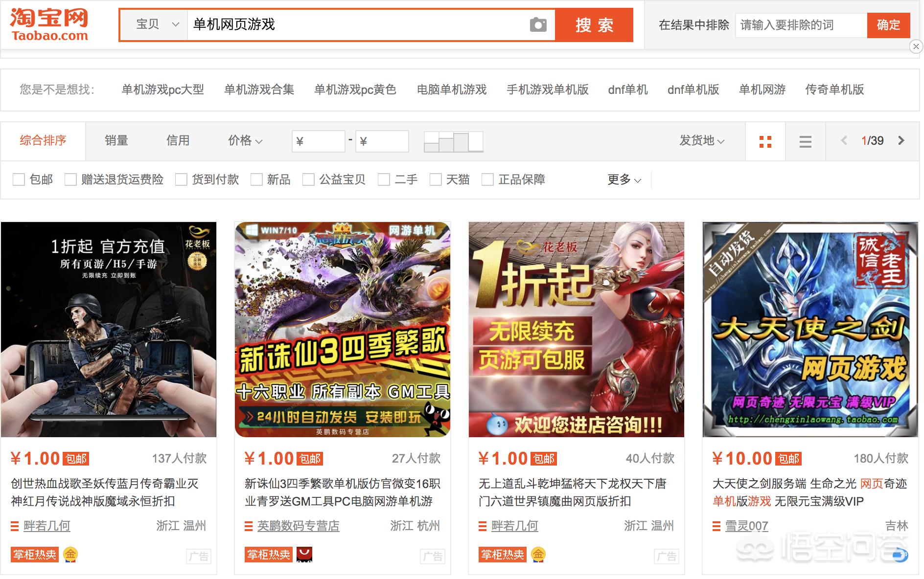 在淘宝里面有一个神奇的领域,单机游戏售卖区,里面不单包含了各种单机游戏,还有着各种网络游戏、网页游戏的单机版。