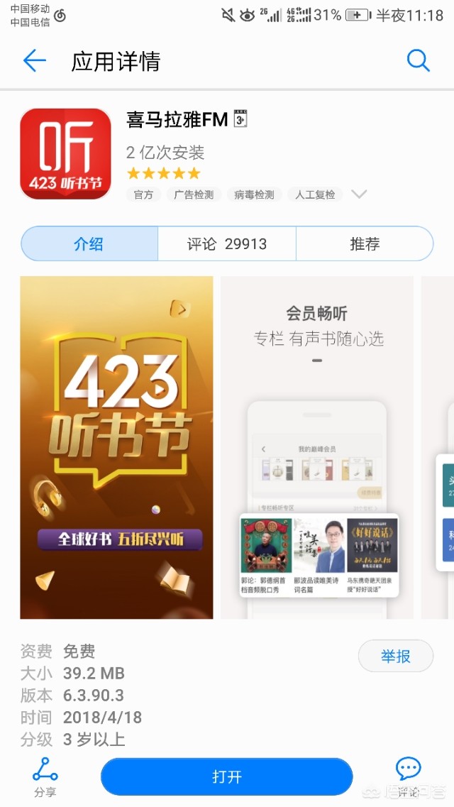 4、荔枝FM。这个软件免费提供听音乐、英语、睡前故事、儿童故事、有声小说、相声段子、历史人文等功能。