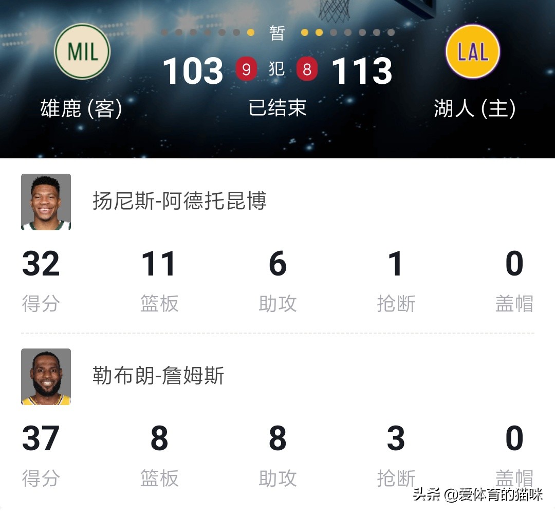原本还一定意义上掌握着比赛的主动权的雄鹿,在湖人第三节那一波18:0的冲击波后再也无力回天,面对湖人多人轮转的阵容,他们的进攻渐渐被湖人的坚韧防守所压制,最后败北,应该说,教训深刻:湖人用内线的硬度能击败他们,而且是在浓眉上半场6分3犯规,完全被字母哥压制下完成的,下一次对决,雄鹿很难找到对付湖人的办法!