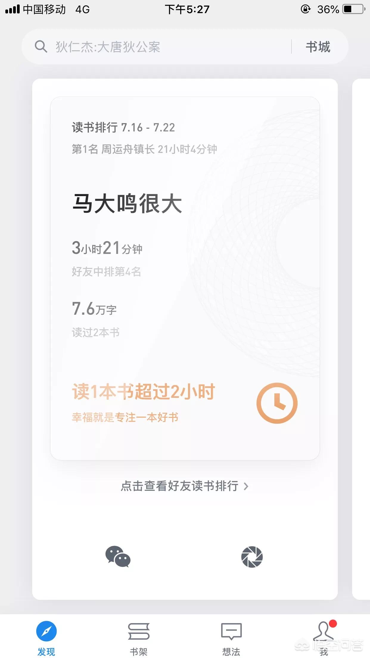 你可以看到你的其他微信好友都在读什么样的书,这本书有多少人在读。每周还有一个排名,可以看到本周阅读时间最多的朋友。