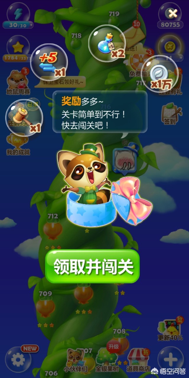 这个游戏可以说是经典之中的经典,因为太简单了,反而有些关卡你根本过不去,那要看运气的,若是觉得太耗费流量的话,是可以当做单机游戏来玩的,只要联网收取家园树上的能量就好了,或者做活动的任务,领取一定的奖励。若是没有能量,一天有一次,免费向朋友索取能量的机会,会赠送你一个大的能量瓶,和好友的十个小瓶能量,同时你可以赠送能量给好友,来而不往非礼也。