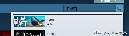登陆后搜索英文名字Raft也就是木筏求生接下来就是购买下载了!