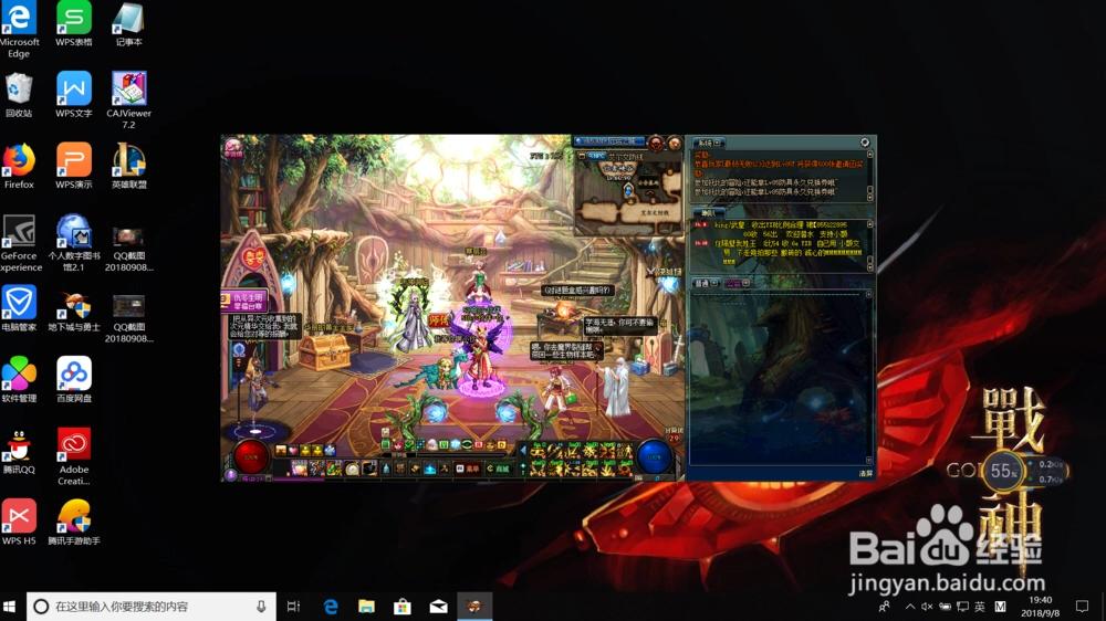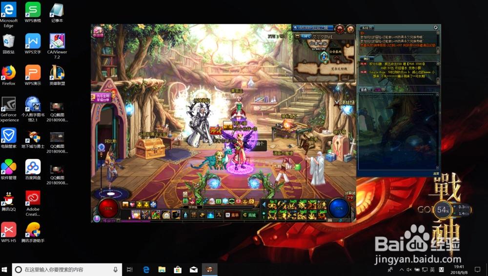 首先,正常状态下的游戏界面在电脑桌面处于合适的大小位置,游戏设置里的窗口设置为窗口800*600