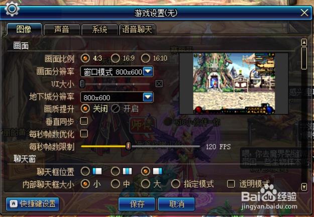 我们该如何解决呢?首先将游戏设置里的窗口设置为正常状态下的800*600.保存后退出游戏。