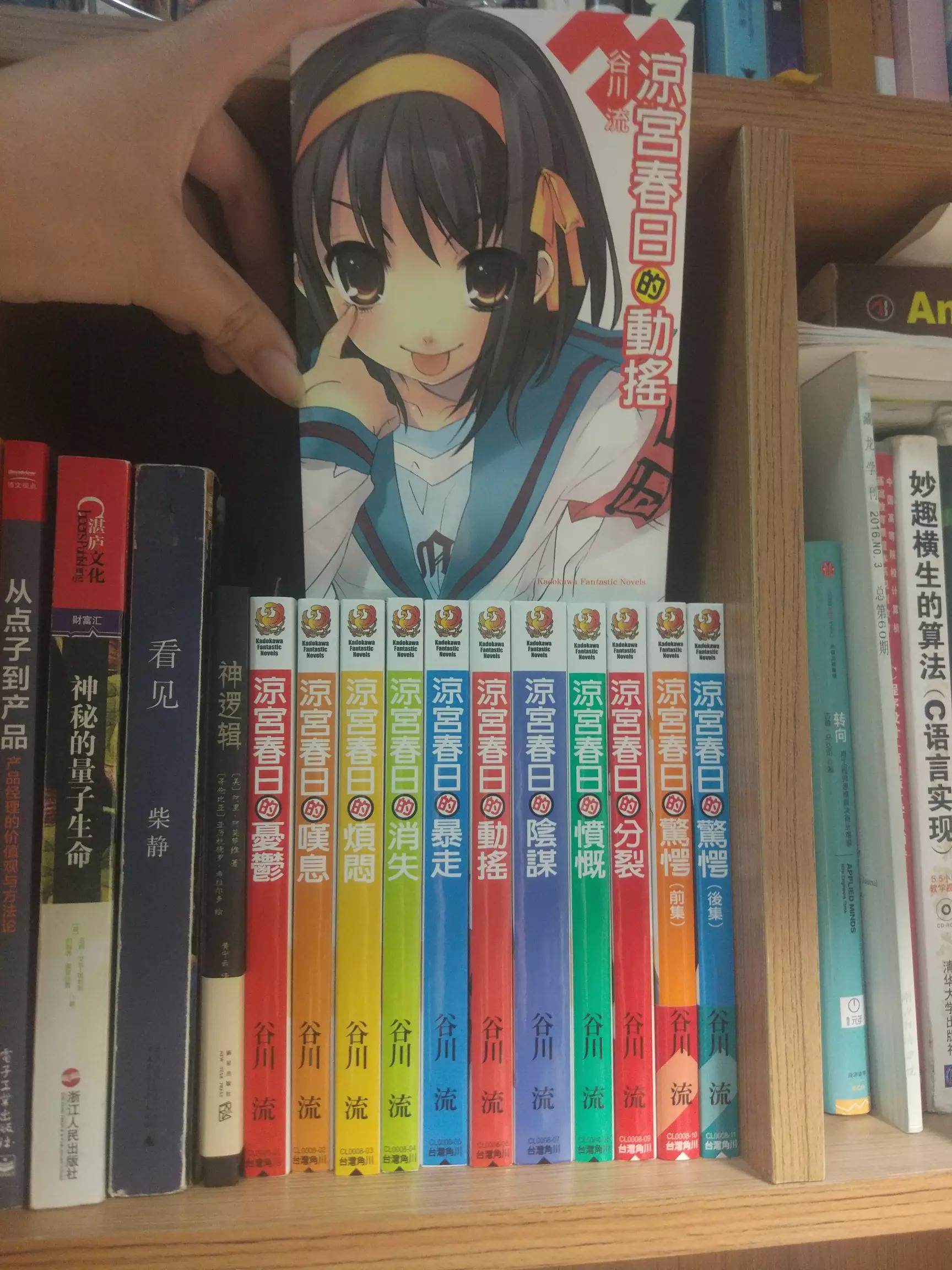 如果你想完整的把小说从头至尾开始看的话,建议按照小说出版顺序从《凉宫春日的忧郁》开始看,如图所示,接下来的顺序分别凉宫春日的叹息,烦闷,消失,暴走,动摇,阴谋,愤慨,分裂,惊愕(上),惊愕(下)。这其中《凉宫春日的惊愕》内容是接着《凉宫春日分裂》的,所以作者也是强烈建议先看分裂再看惊愕。