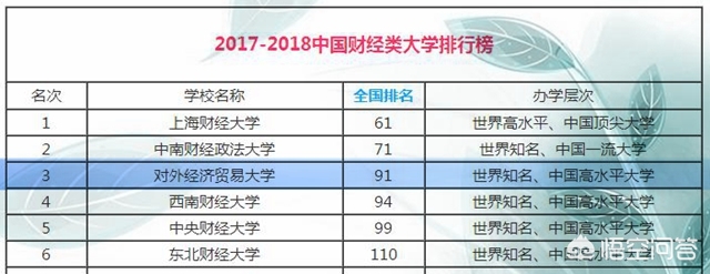 1:在校友会全国大学排行榜上,对外经济贸易大学位居全国第91位,财经类大学第3位。办学层次为世界知名,中国高水平大学。