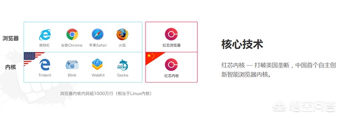 先看看怎么宣传的,红芯内核打破美国垄断,中国首个自主创新智能浏览器内核。