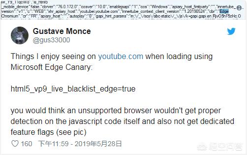鉴于此前 Edge Insider 能够正常访问 YouTube 网站,近日发生的 bug 让我们很是不能理解。有人发现,问题似乎出在 YouTube 在 JavaScript 代码上。