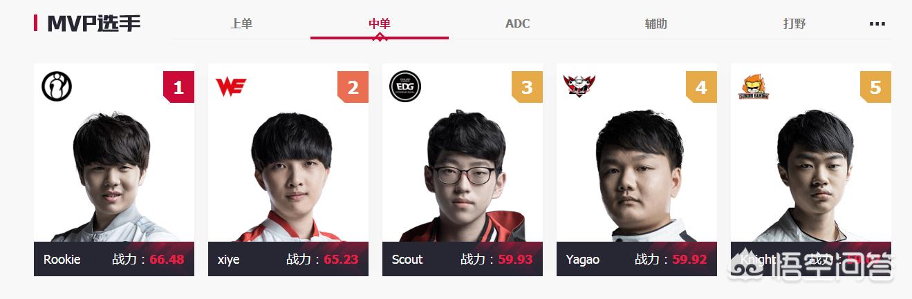 中单位置以势不可挡的IG中单ROOKIE一马当先,随后WE的XIYE紧随其后,第三名是小学弟,前三目前实至名归,都是LPL明星中单选手。