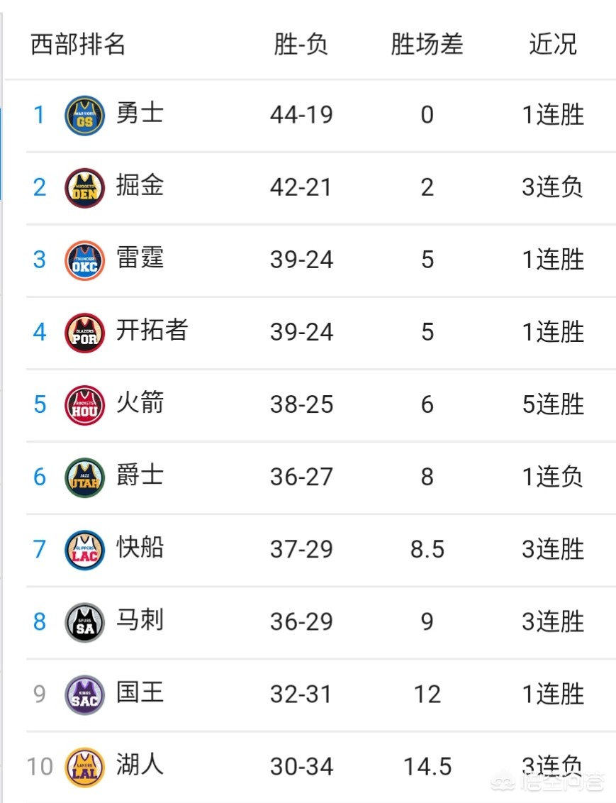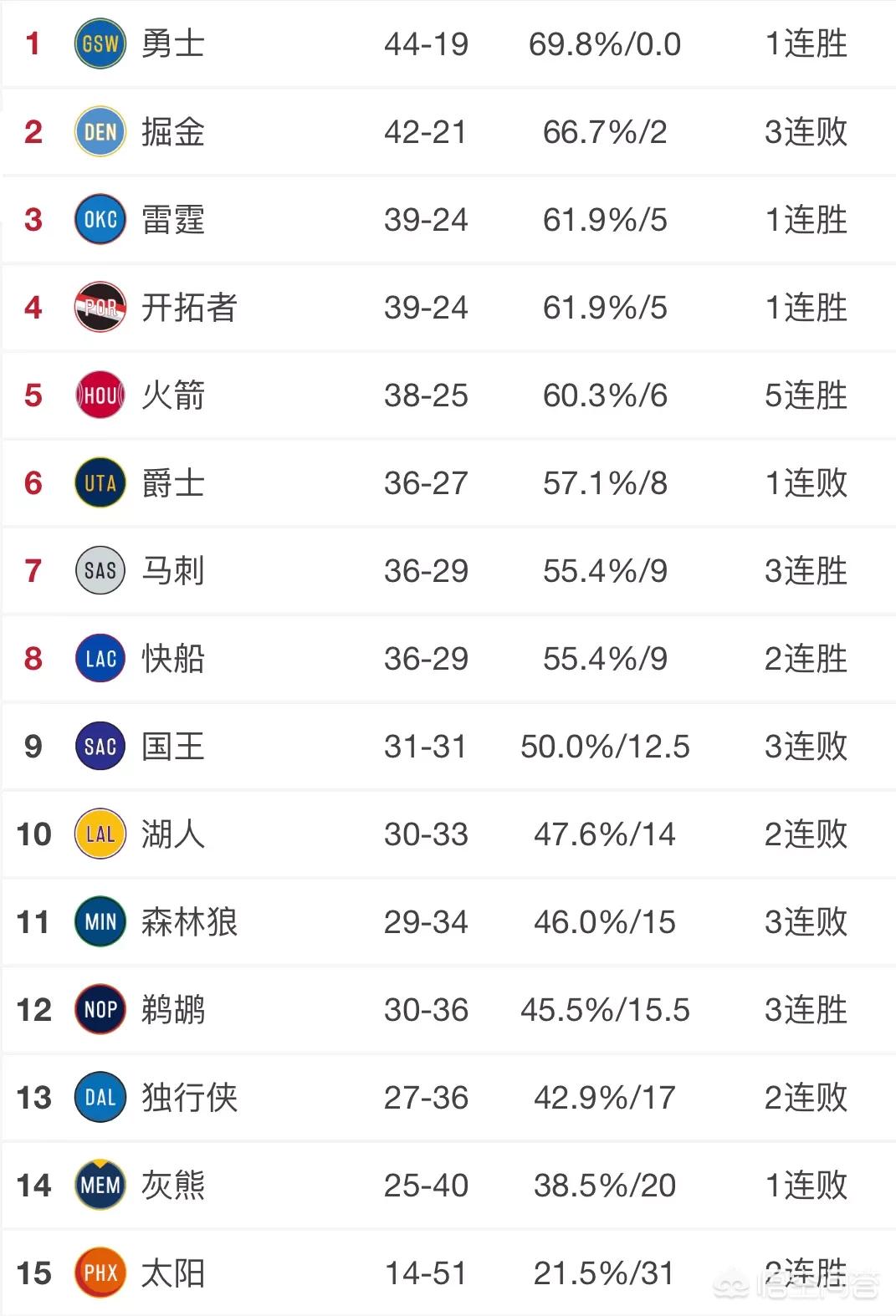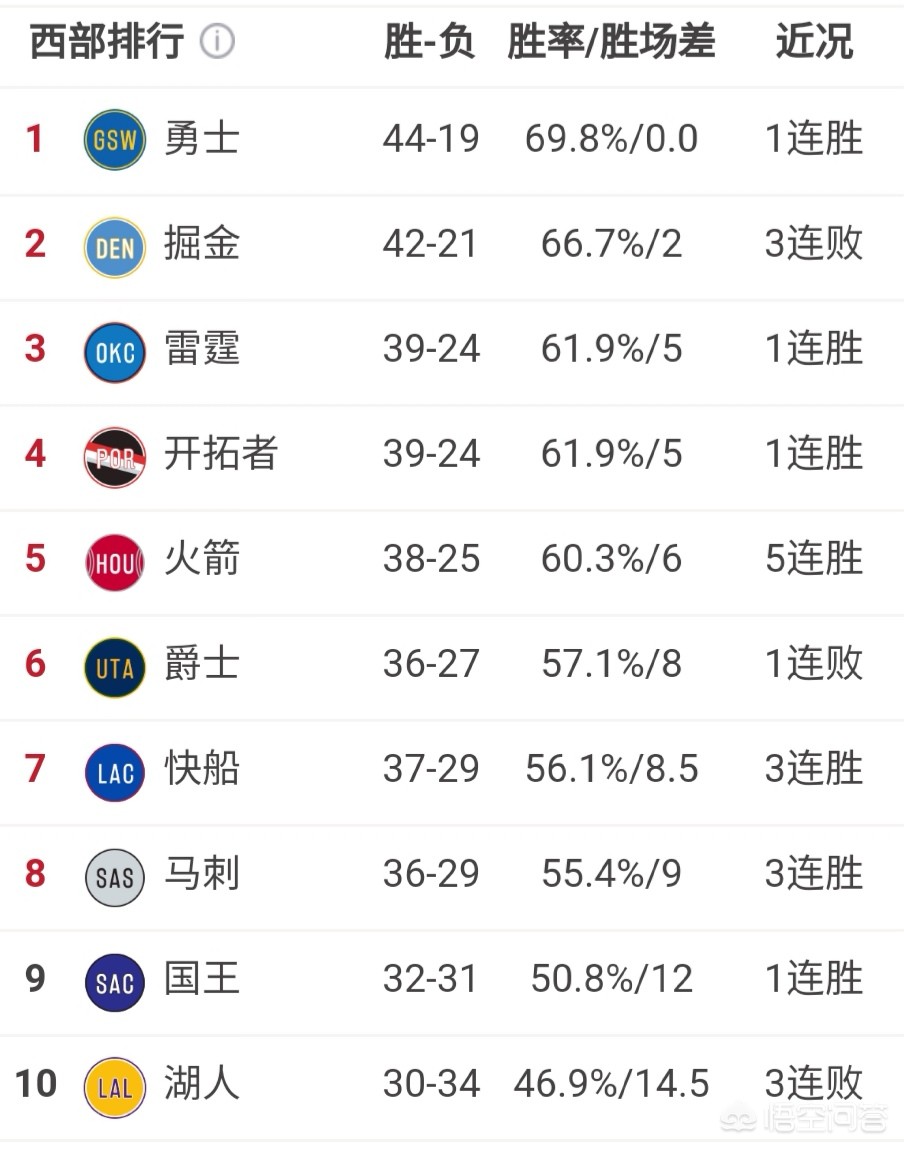 狂野西部,群雄逐鹿。马刺胜掘金,鹈鹕克爵士,快船胜湖人。接下来让我们看着排名做具体分析。