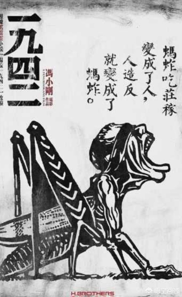 第四个电影《一九四二》的海报。蚂蚱吃庄稼,变成了人,人造反,就变成了蚂蚱。一种属于那个年代的无力感扑面而来。