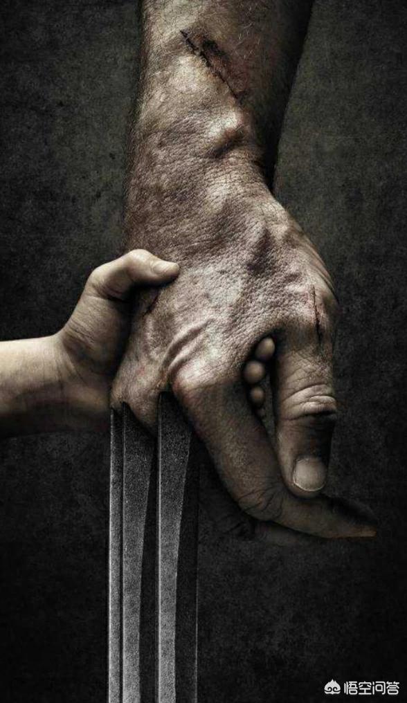 第一个 ,电影《金刚狼3 》的海报。英雄迟暮,利爪已不再锋利,手臂负伤,小女孩儿柔弱的手臂与狼叔强壮而苍老的手臂握在一起,让人鼻子一酸。