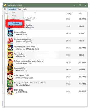 2. 在【Emulation】的下拉菜单中点击【Configure】;
