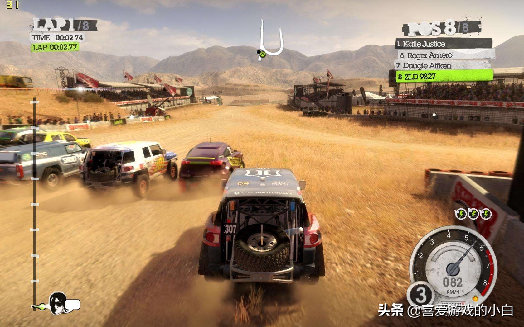 Dirt3是偏向娱乐难度一般用键盘就能玩好。(刚开始玩的时候是很难的)有拉力赛,开拓者,RX,场地赛,漂移赛,特技赛。以Ken block为主打卖点,优化很好,整体画面偏黄,有刻意营造电影风格的感觉。