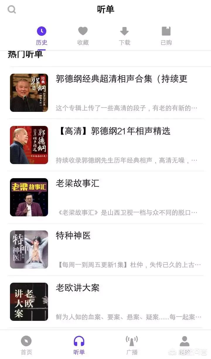 3、毕竟这款软件是听书类神器,所以我们可以在听单栏找到各类听书节目的合集。