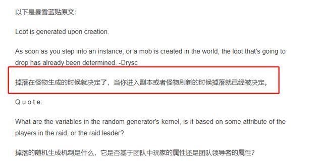 风脸掉率“玄学”之前,必须明白魔兽世界中的装备掉落机制,而副本掉落机制有两种说法,一种是怀旧服国服GM所说的掉率物品与摸BOSS的角色有关,另外一件则是暴雪之前的蓝贴说法,掉率物品在怪物生成时决定,与摸BOSS的角色没有任何关系,鉴于国服GM对游戏的程度及其匮乏,并且暴雪蓝贴显然更加可信,因此我们还是相信暴雪为好。
