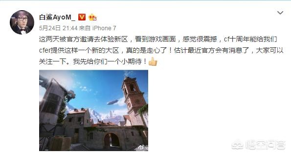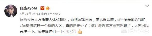 白鲨作为cf的形象代言人,他近日在微博上也发文宣称cf将对画质做出大更新,甚至有望追上绝地求生的画质。