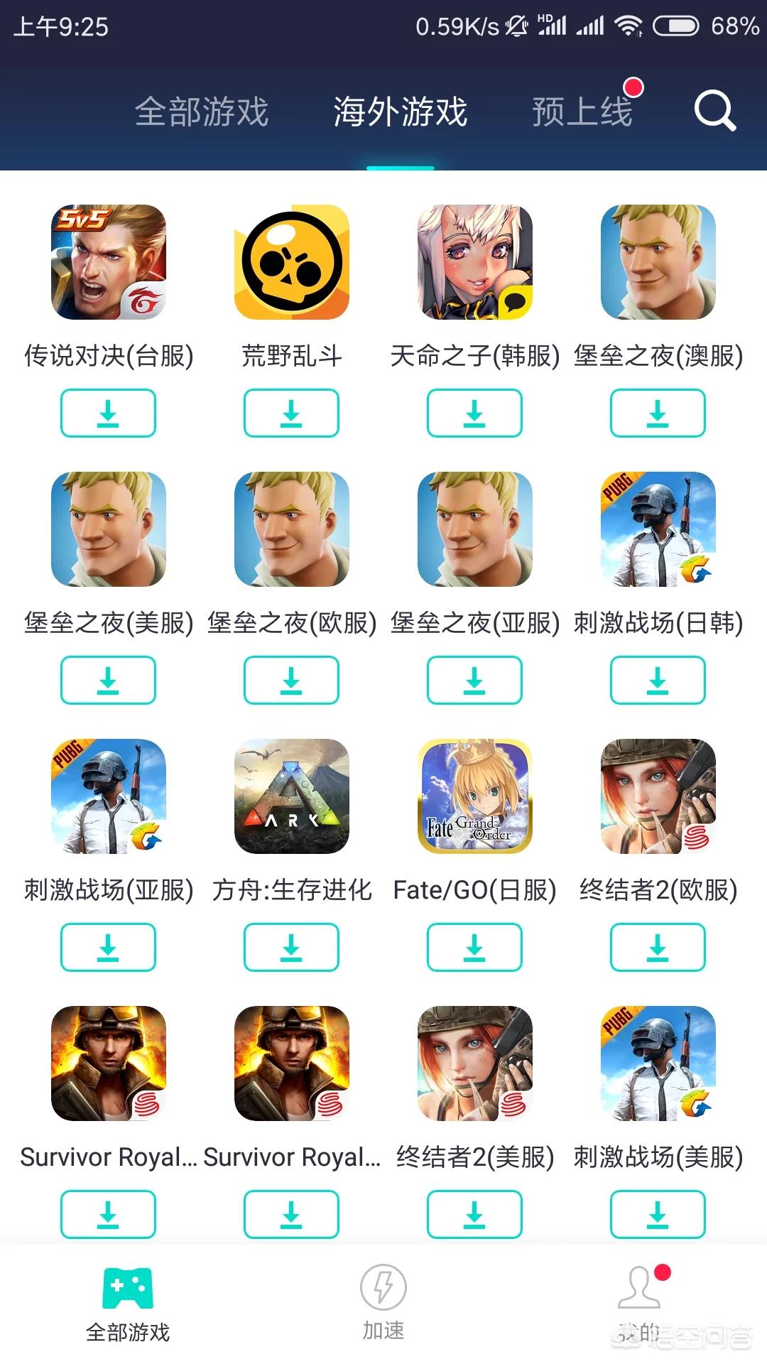 在该加速器当中可以下载刺激战场的外服,不仅如此,其他游戏的海外版本都是可以下载的。还有一个惊喜的发现,