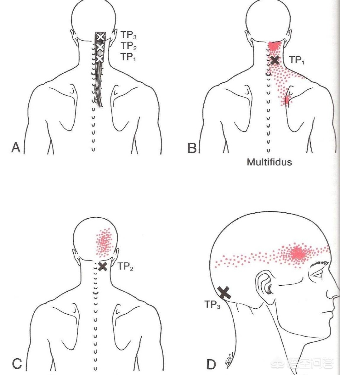 头顶的疼痛应该考虑头夹肌紧张疼痛刺激枕大神经导致的症状,后脑勺疼痛应该考虑半棘肌刺激枕小神经造成的症状,都可以在相应的肌肉找到触发点,按压会有明显的疼痛感,痛点在患侧的一边。