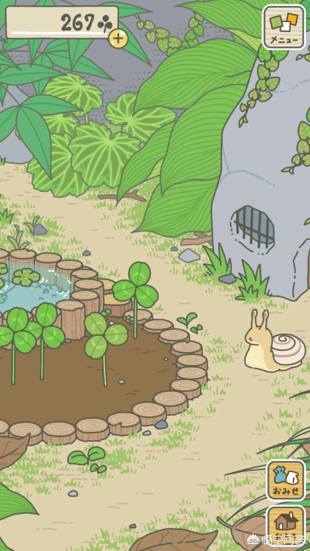 玩家在这个游戏里大多数时间处于“无所事事”状态,我们每隔一段时间开游戏看看,屋外的幸运草长满了就去拔一拔,收获的幸运草可以拿来购买各种便当、碗具、水壶、灯笼等道具,这些都是可以给小青蛙出门带着的。