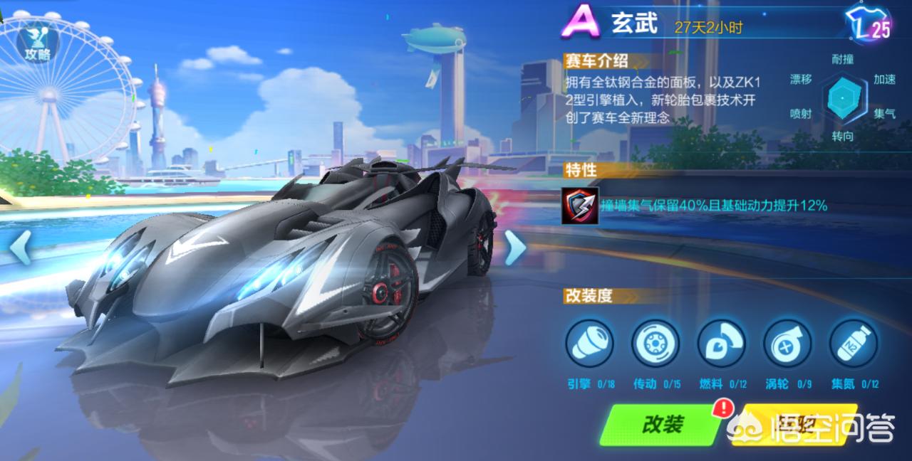 玄武是一个平跑车,撞墙氮气保留40%,基础动力增加12%,这个数据是很适合道具赛的,在道具赛里面经常都是撞墙,被龙卷风,酷比,闪电等道具砸的玩家可以考虑