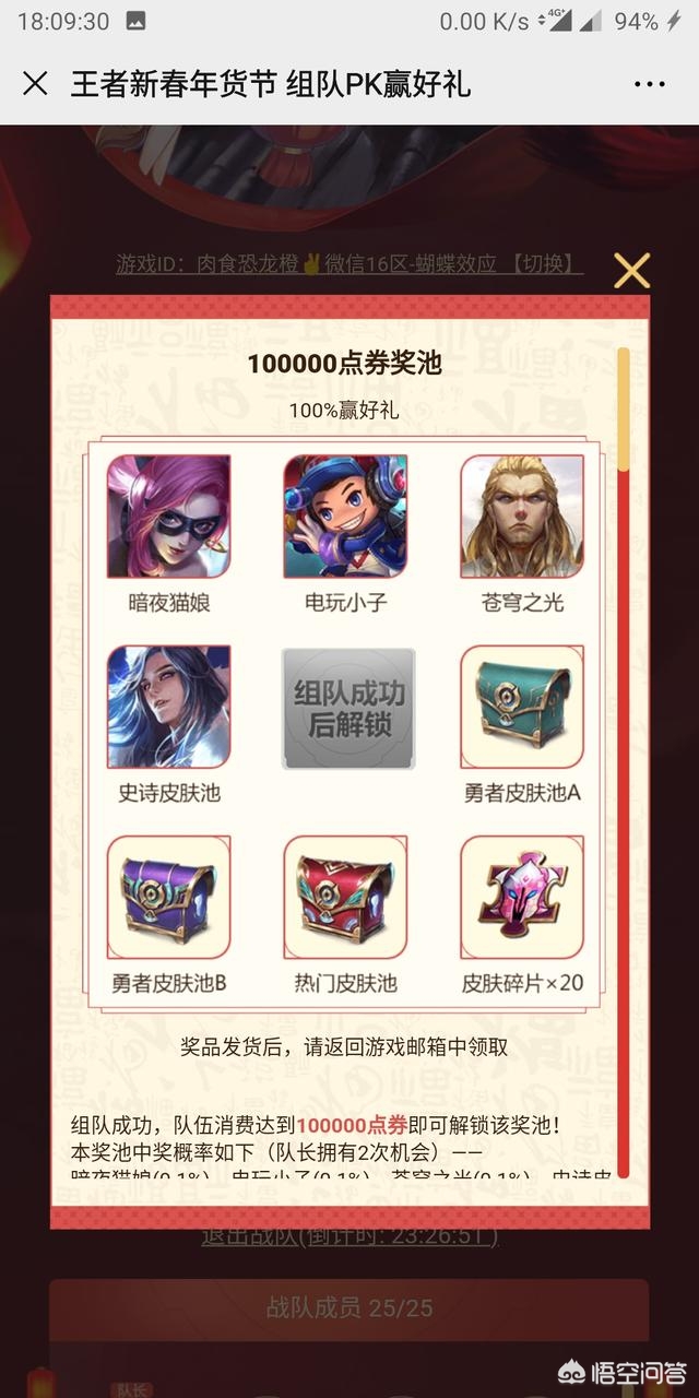 所谓组团消费,就是n多人组成一个消费群体,在活动期间消费到一定数额的点券可以抽奖,其中有最高史诗级皮肤的奖励。