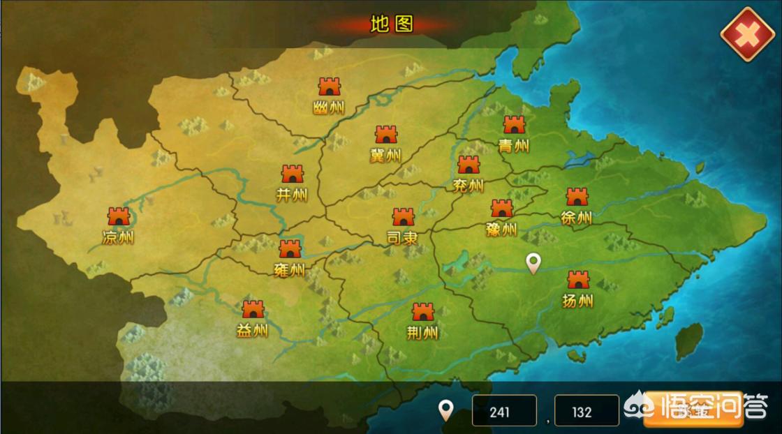 这是《萌军天下》的大地图,中间四个资源州,周围九州环绕