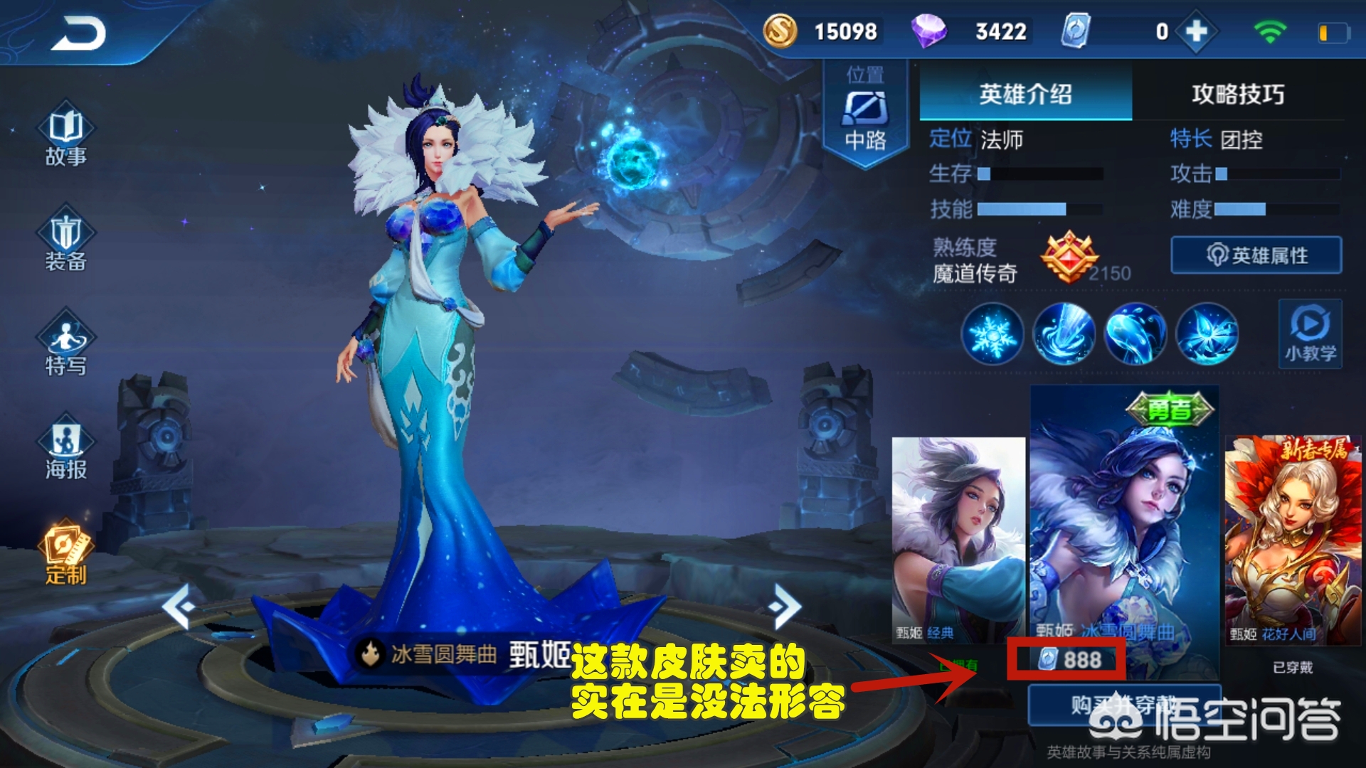 《王者荣耀》问题:为什么甄姬“冰雪圆舞曲”皮肤与原皮几乎没区别却卖史诗皮肤的价