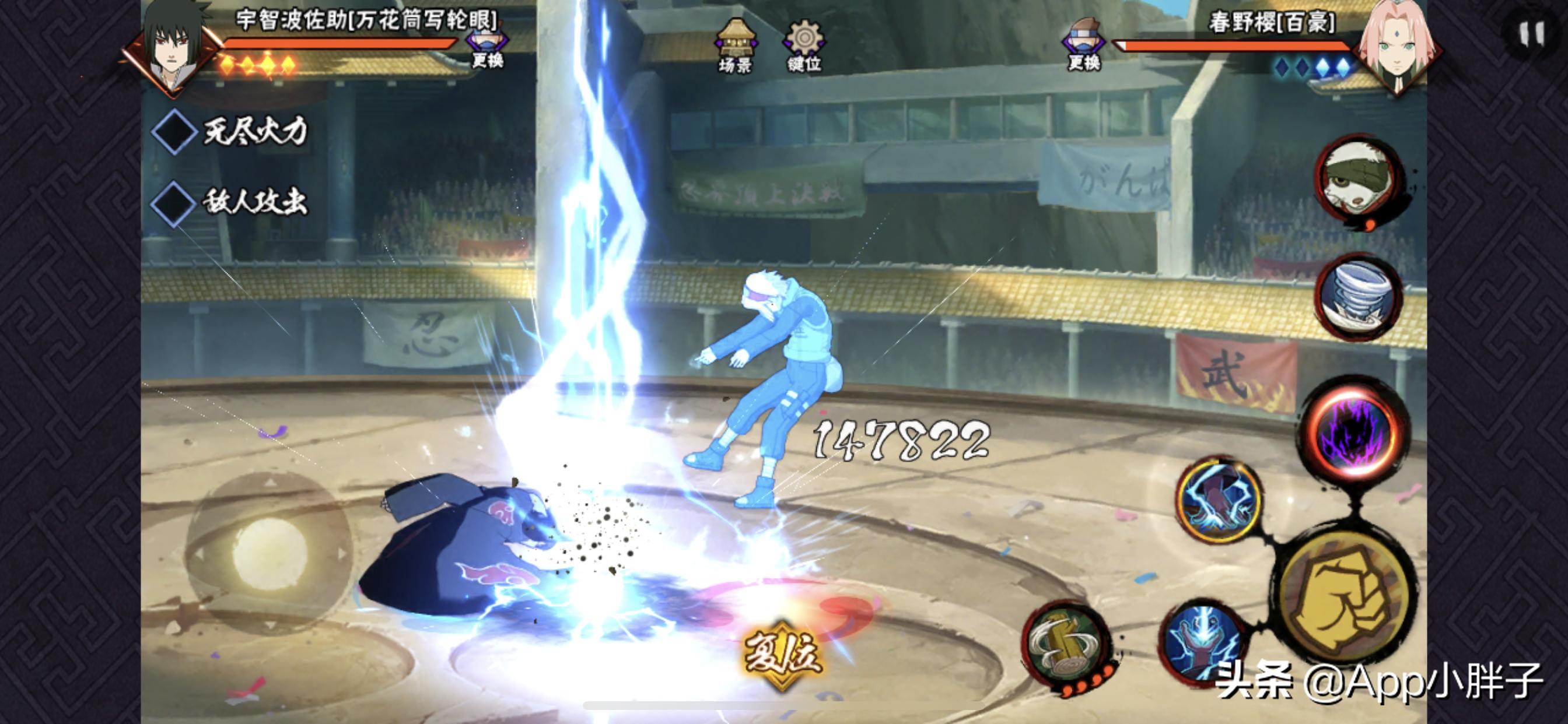 一技能:佐助自创的雷遁系忍术,改变千鸟的形态,增大了攻击距离从天空向地面劈下。