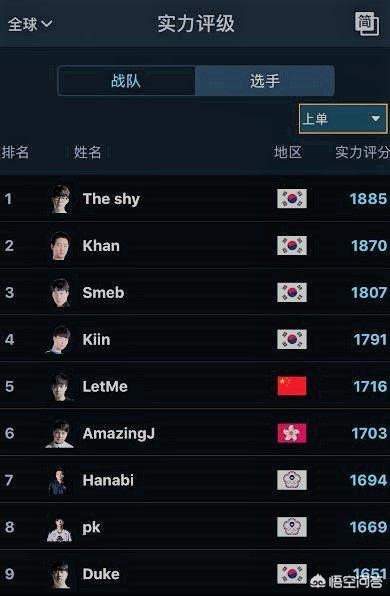 最近LOL官方公布了世界上单排行,Theshy依旧以绝对的优势稳坐世界第一上单的位置,而让我们没有想的是离队半年没打Letme竟然出现在榜单的第六名,这的确有点让我惊讶。