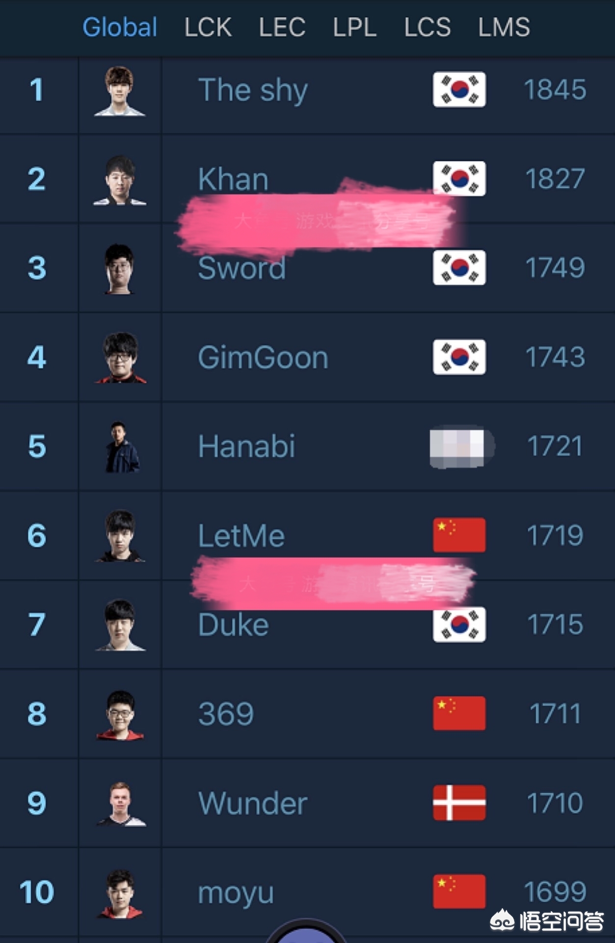LOL官方公布世界上单排行,TheShy第一,Letme不战依然第六,你怎么看