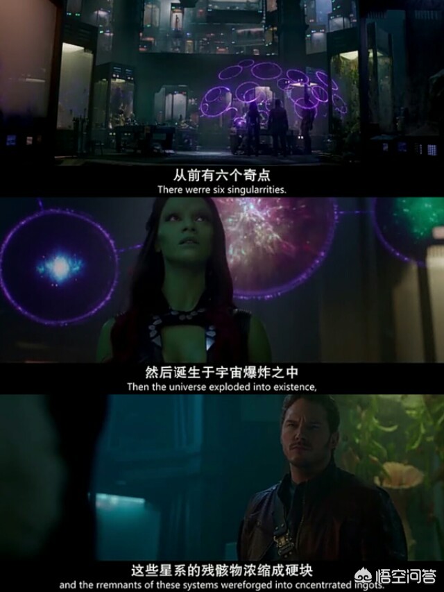 首先,开头提到瓦坎达得到振金和心形药草都是由一块天降的陨石所带来的。而在《银河护卫队》中提到无限宝石的设定是一个残骸