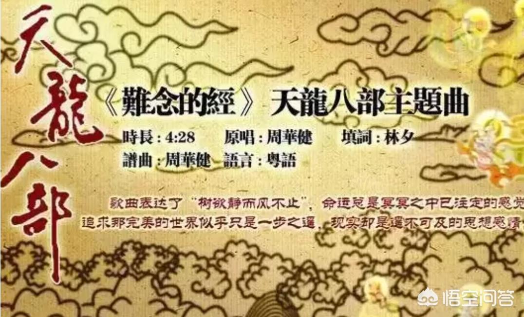 先听到这首歌,觉得周华健在耍酷,而歌名更是让人费解。后来才知道是《天龙八部》的主题曲,顿时觉得妙不可言。