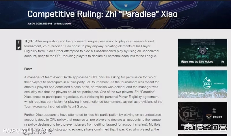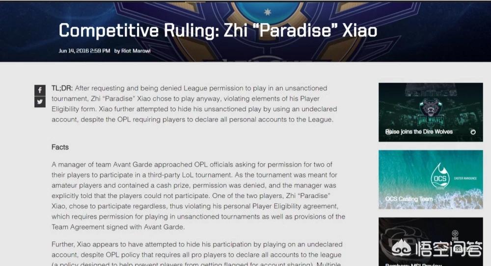 当然这个选手除了rank之外还被扒到了其他的事情,其中一件就是在澳服进行比赛的时候官方明令禁止他去参加的一个赛事,他还是去参加了最终被处罚禁赛两场以及现金罚款。看样子并不是一个很乖的选手,有点刺头的感觉。