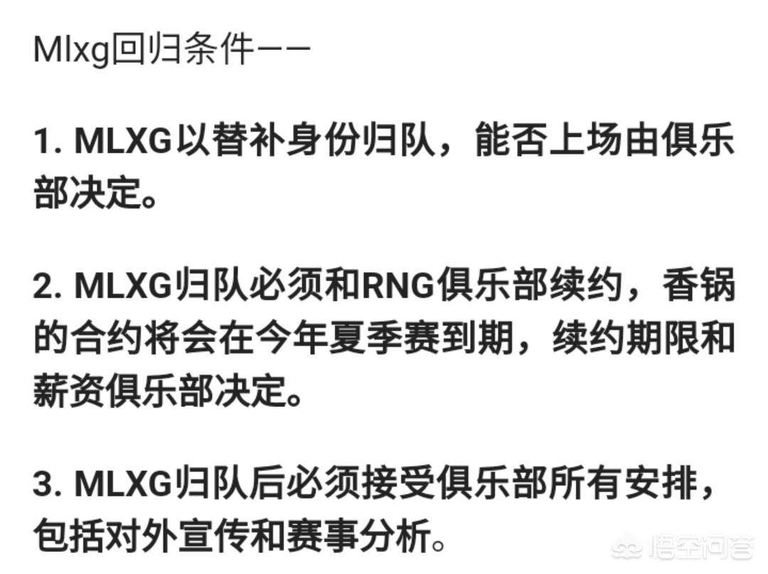 这是之前爆料称MLXG上场的条件,明显的霸王条约啊!下面就是RNG的回应!