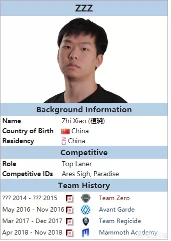 随后从网络上找到的资料可以看到,这位Zrr原名叫肖植,是一位上单选手,从14年开始便进入职业圈,不过职业生涯前几个赛季都在一些名不见经传的俱乐部效力,这一次也是终于加盟RNG这样的强队,想必也是有一定实力。