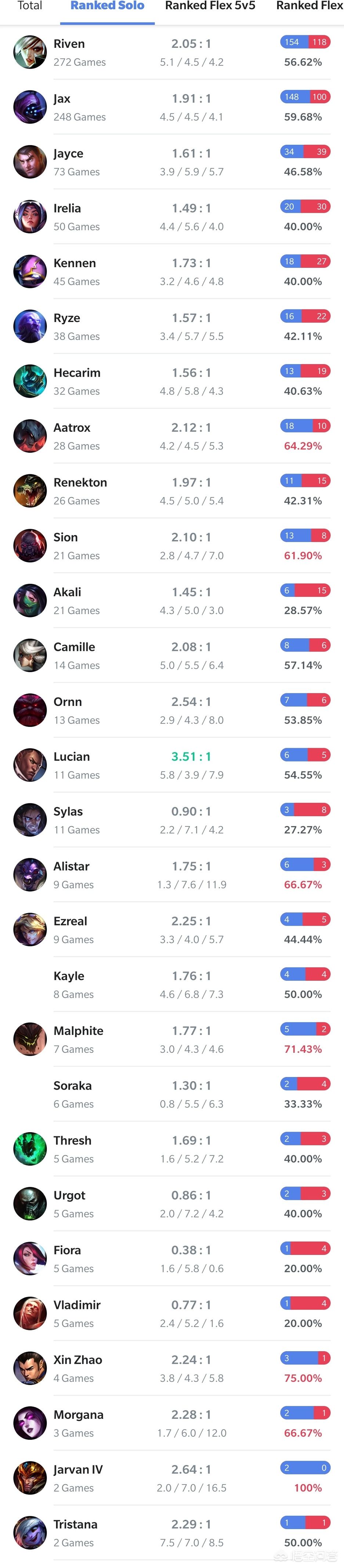 从他过往个人战绩来看,这位选手英雄池还是非常的深,在上单位置上能够使用多个英雄,这其中他最常使用的是