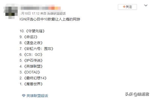 作为游戏界的权威媒体网站,IGN一向在游戏界非常有话语权,它发布的文章也是非常具有含金量的。最近IGN就发布了一份“最让人上瘾的10款网游”榜单,具体排名如下——