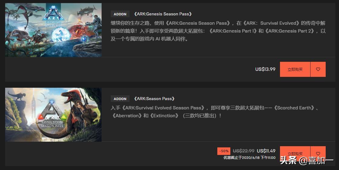 Epic送方舟的消息已经放出很久了,原本是计划6月3号晚上放出的,后来开发商为了和社区活动联动,推迟到了6月11日。但是进入Epic页面发现免费按钮有好几个,很多新玩家搞不清楚,下面是各个版本的区别: